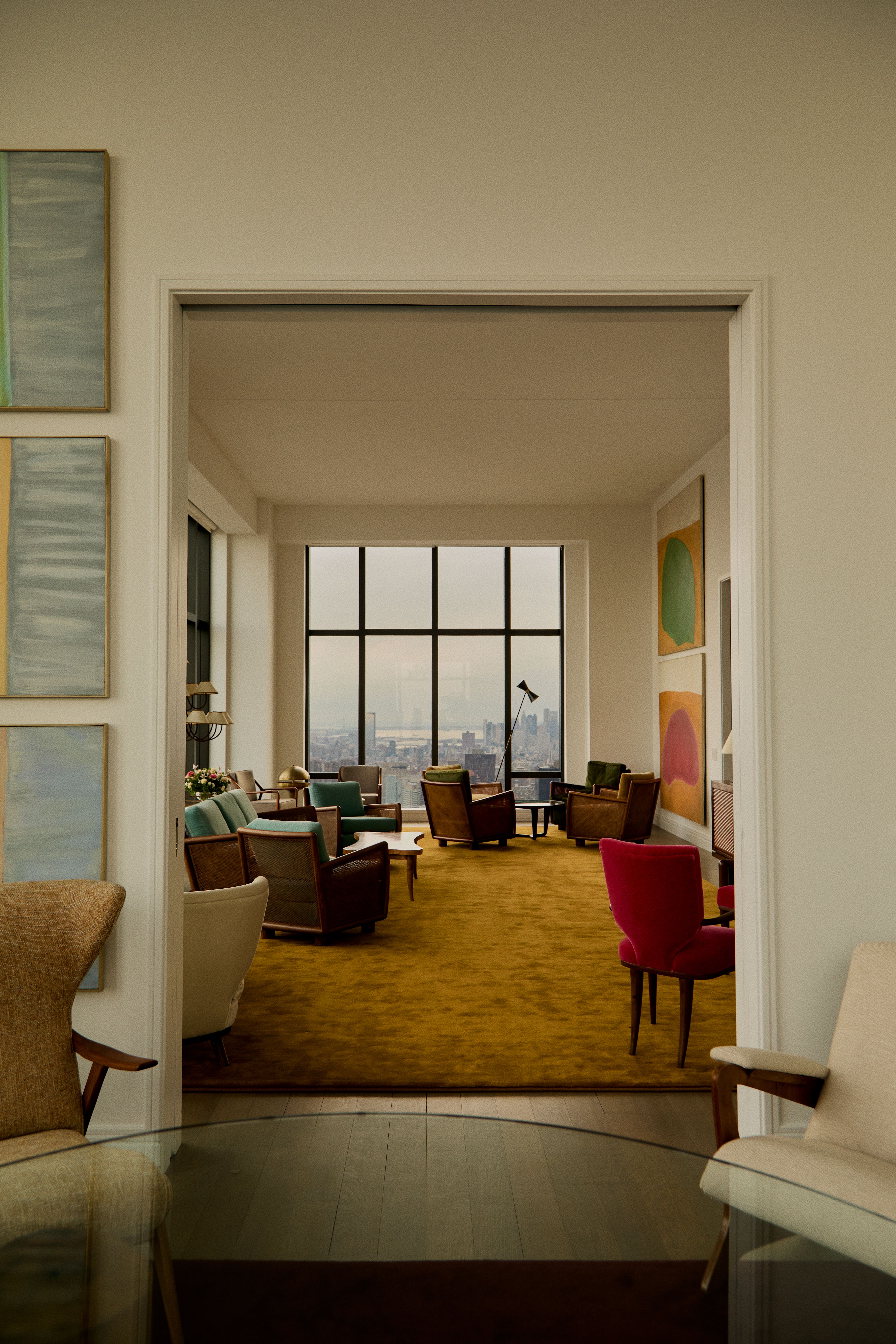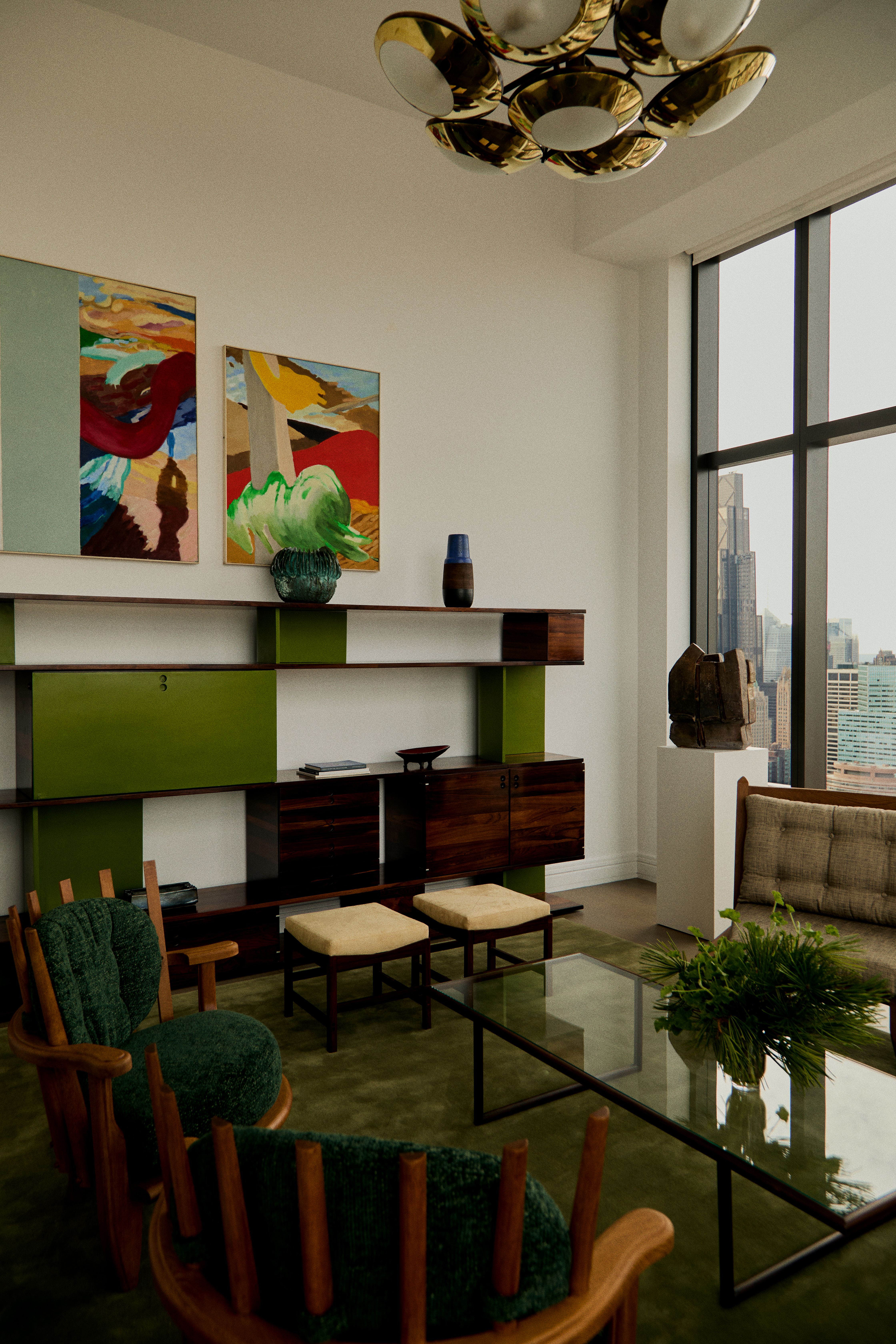 High above Manhattan, Galerie Gabriel's penthouse sets the stage for 'Crossed Trajectories', a considered exhibition curated by New York-based interior designer Studio Mellone. Conceived as a study in movement and cultural exchange, the show traces the journeys of post-war designers and artists who crossed continents in pursuit of new creative vocabularies. At its core is a dialogue between French designer Jean Royère and Argentine artist Roberto Platé. Their works, distinct in material, form and intention, converge here through shared histories of displacement and reinvention. Royère's sculptural furnishings and Platé's tactile, expressive surfaces are joined by pieces from fellow transatlantic figures, including Zanine Caldas and Jorge Zalszupin, each object bearing the subtle imprint of migration and the shaping force of circulation. The penthouse setting amplifies the exhibition's premise: framed by the Manhattan skyline, the works appear suspended between geographies, their forms resonating with the idea of movement not as a rupture but as a generative force.